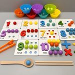 Farverige perler, forskellige teksturer og redskaber stimulerer syn og berøring for at styrke den tidlige forståelse af matematik.